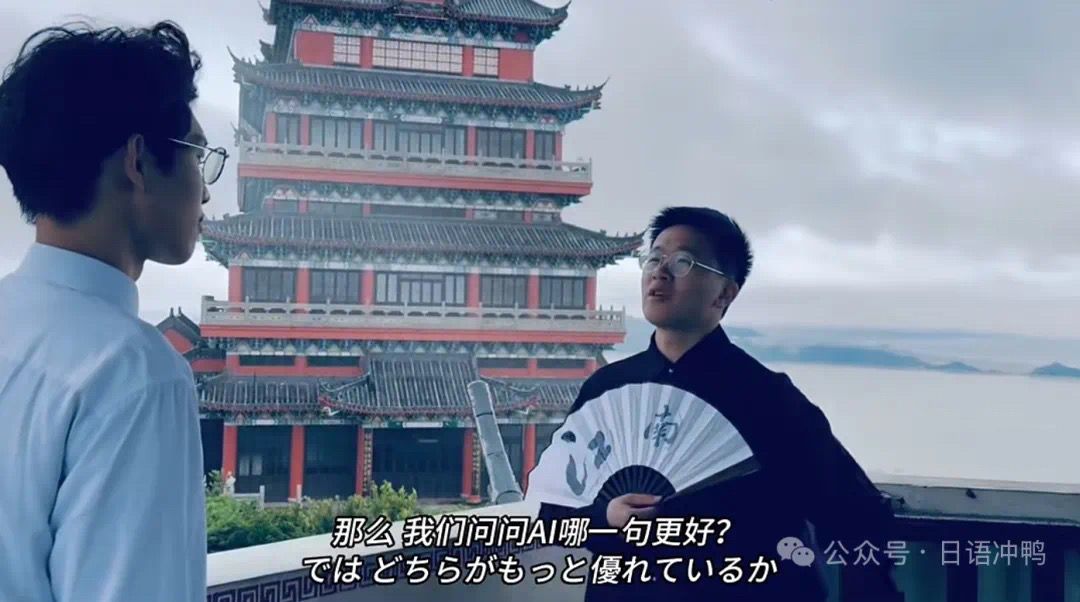 91探花 仁济学院的同学们在两位老师的悉心指导下,以百岛洞头望海楼为背景制作短视频“传统文化创新演绎:AI吟游诗人——当中日古典文学遇上人工智能”,结合唐朝诗人杜牧与日本俳句大师松尾芭蕉的名句,将传统文化进行创新演绎。