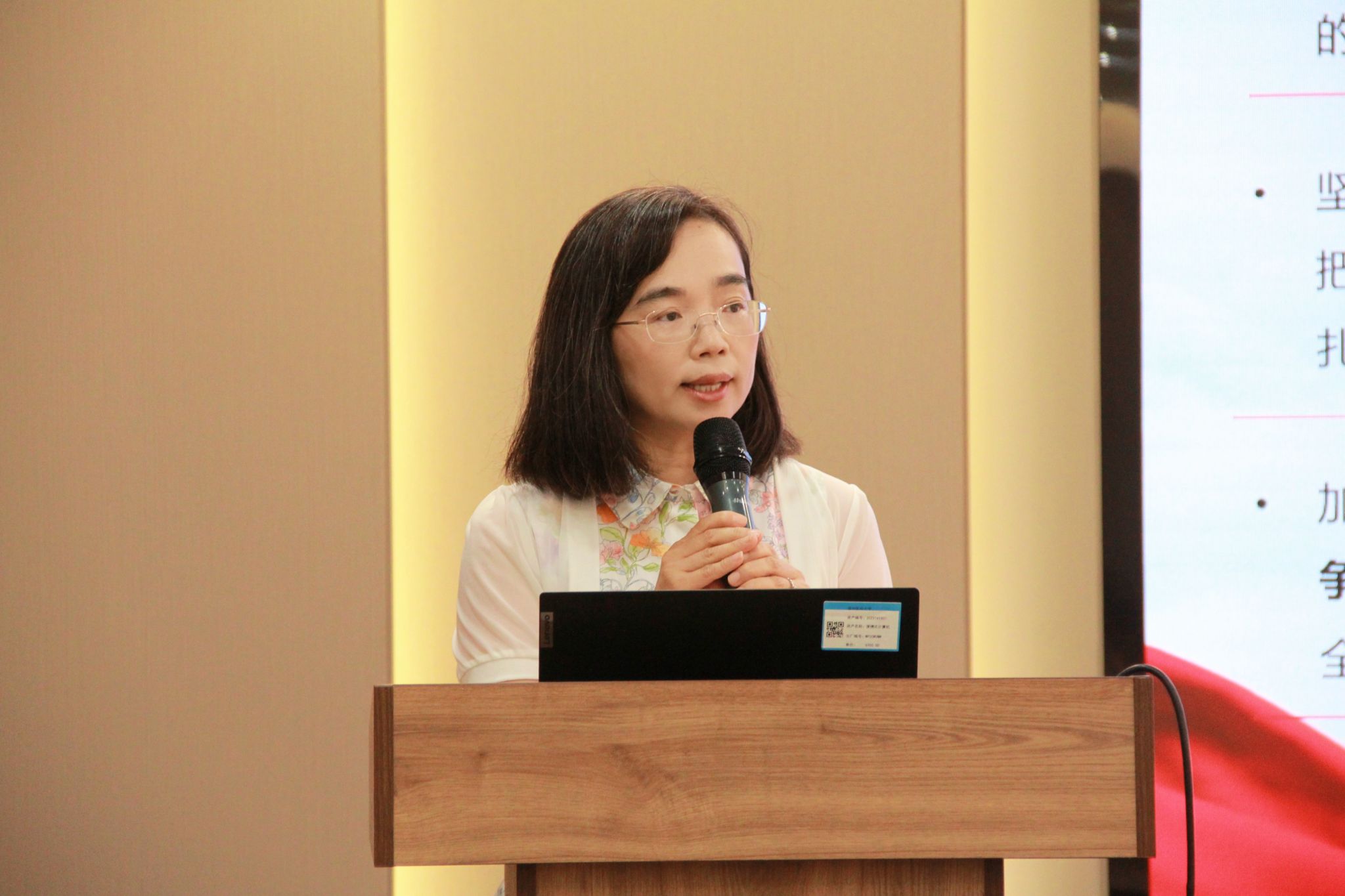 随后,章艳乐副院长作暑期工作通报及学期初工作报告。她从教学科研、师资培训、社会服务等方面对暑期工作进行通报,重点部署了新学期教学工作。她强调全院教职工要严格按照学校的要求做好本科教育教学审核评估工作,凝心聚力、笃行实干,抓住机遇、乘势而上,持续推动学院高质量发展。