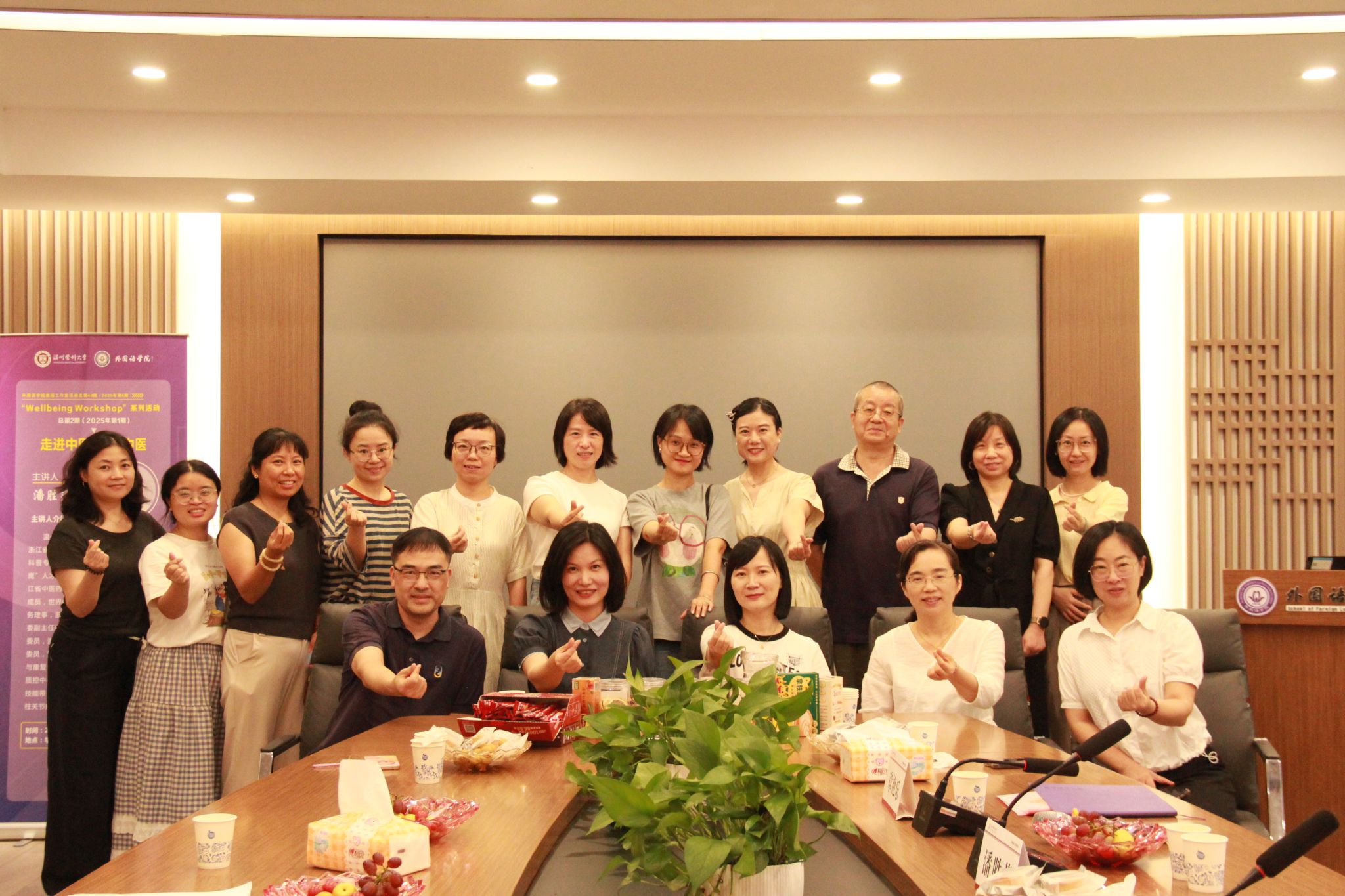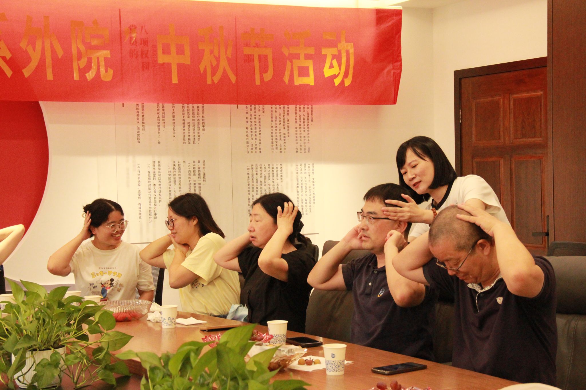 在同仁楼B104会议室成功举办了“浓情中秋,情系外院”主题茶话会。活动特邀温州市中医院主任中医师潘胜莲,为教师带来了一场内容丰富、实用有趣的颈椎病防治健康知识讲座与互动体验,现场气氛温馨而热烈。