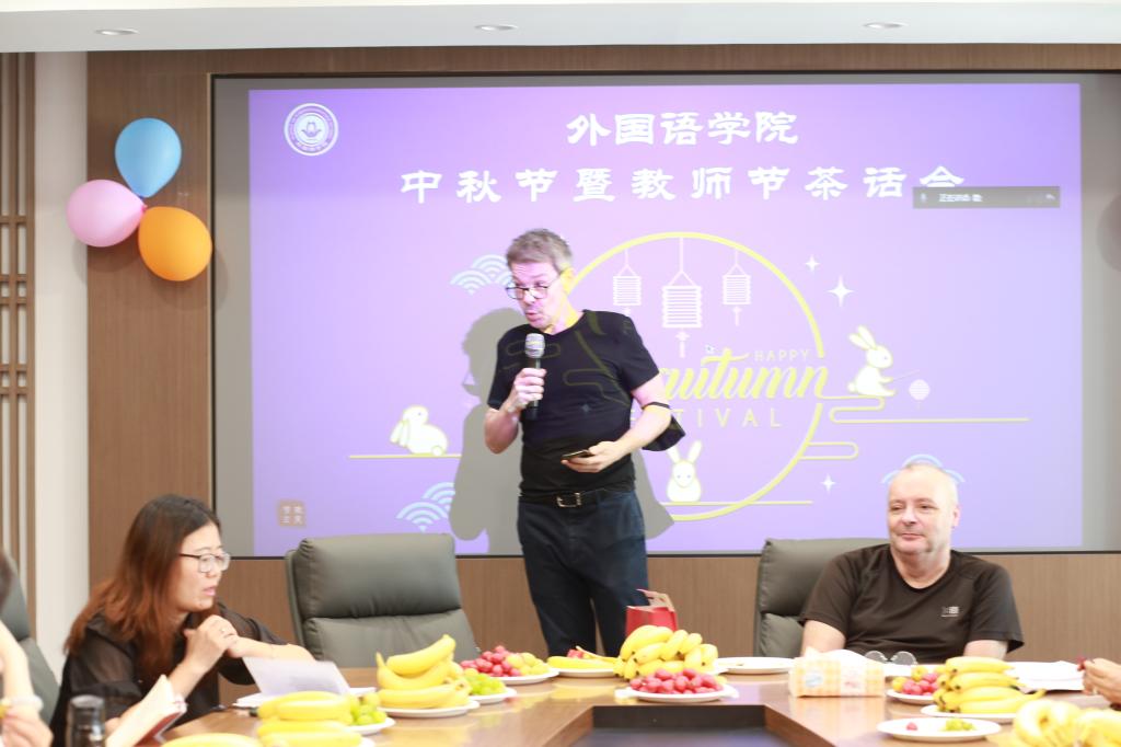 一位来自英国的外教David感慨地表示,这是他在中国度过的第二十个中秋节,非常高兴和各位老师一起庆祝这个吉祥的中国传统节日,并分享了自己对杂技艺术的一些感悟。杂技艺术在中国有着悠久的文化历史,千锤百炼所锻造出来的精彩杂技表演体现了中华民族身处险境却仍然能自强不息、超越自我的民族精神,而这正是我们在教育中需要积极引导学生传承的。