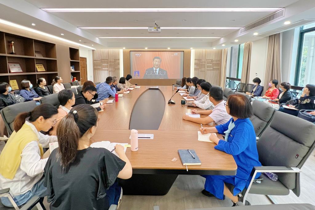 全体院领导、中层教研管理干部、全体党员及教师代表在学院7B104会议室集中收看党的二十大开幕会盛况,满怀激动地聆听党的二十大报告。