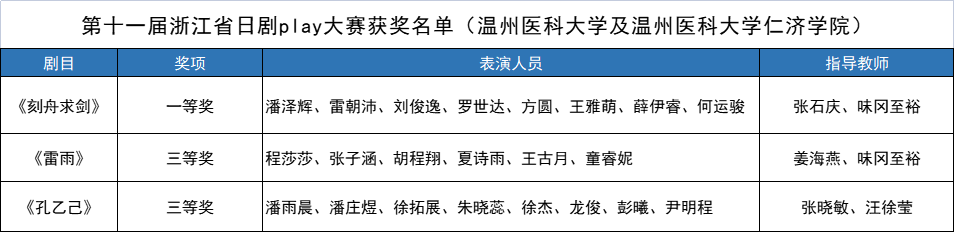 近日,由浙江省人民对外友好协会主办,浙江工商大学东方语言与哲学学院团委承办,中国日语教学研究会浙皖赣分会、浙江工商大学和风日语协会协办的“第十一届浙江省日剧play大赛”顺利落幕。我校选派的《刻舟求剑》剧目荣获一等奖,《雷雨》和《孔乙己》两个剧目喜获三等奖。