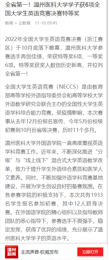 2022年全国大学生英语竞赛决赛(浙江赛区)于10月底落下帷幕,91探花