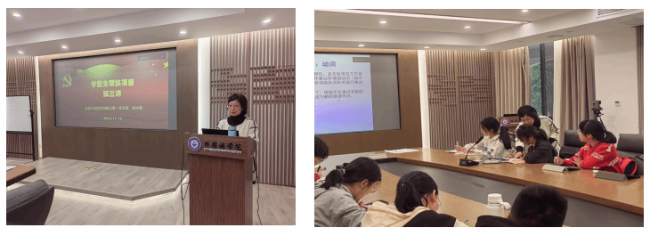 11月16日,第一期帮扶活动在7B104开展。活动开始前,张冰茹以汉语水平考试听力类比四级考试听力,比较不同语言听力考试的难易差距,帮助学生克服对考级听力的恐惧。活动正式开始后,她围绕如何提高翻译能力进行细致讲解。她列举了学生常犯的翻译错误和语法问题,分析了错误和问题的产生原因,并逐一给出解决办法。为了更好地巩固知识以及提高此次活动的效果,同学们现场完成了汉译英练习并进行互动交流,在交流的过程中,张冰茹结合每一位同学的翻译作业给出针对性修改建议。她在课堂上不断鼓励、肯定学生,在导入、教授、练习各环节都利用学生熟悉的素材设计富有趣味性的活动,让学生感受到英语学习的趣味性。