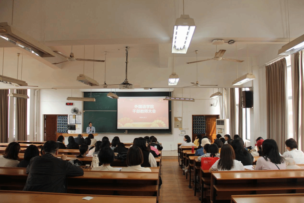 在7BJ104教室召开干部教师大会。学院党委书记刘洁主持会议,全体教职工参会。