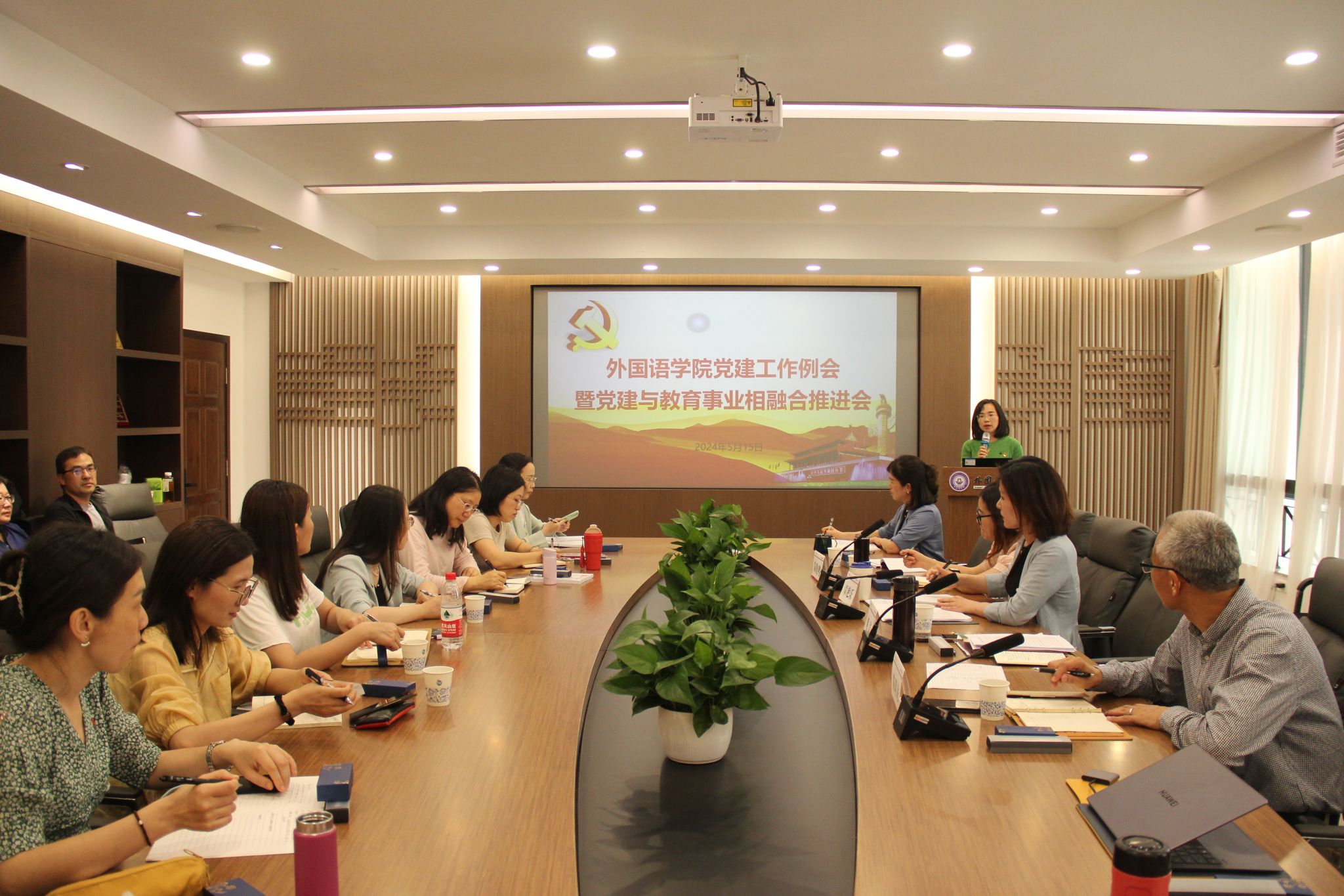 在7B104会议室召开党建工作例会暨党建与教育事业相融合推进会。学院党委书记刘洁主持会议,学院党政领导班子、组织员、各党支部书记及全体支委、全体教研管理干部参会,共同就党建工作与教育事业深度融合进行深入探讨。