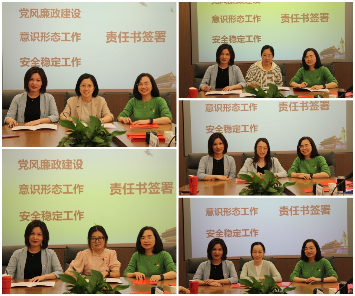 最后,各党支部书记、系部负责人签署了《党风廉政建设责任书》、《意识形态工作责任书》、《校园安全稳定工作责任书》。