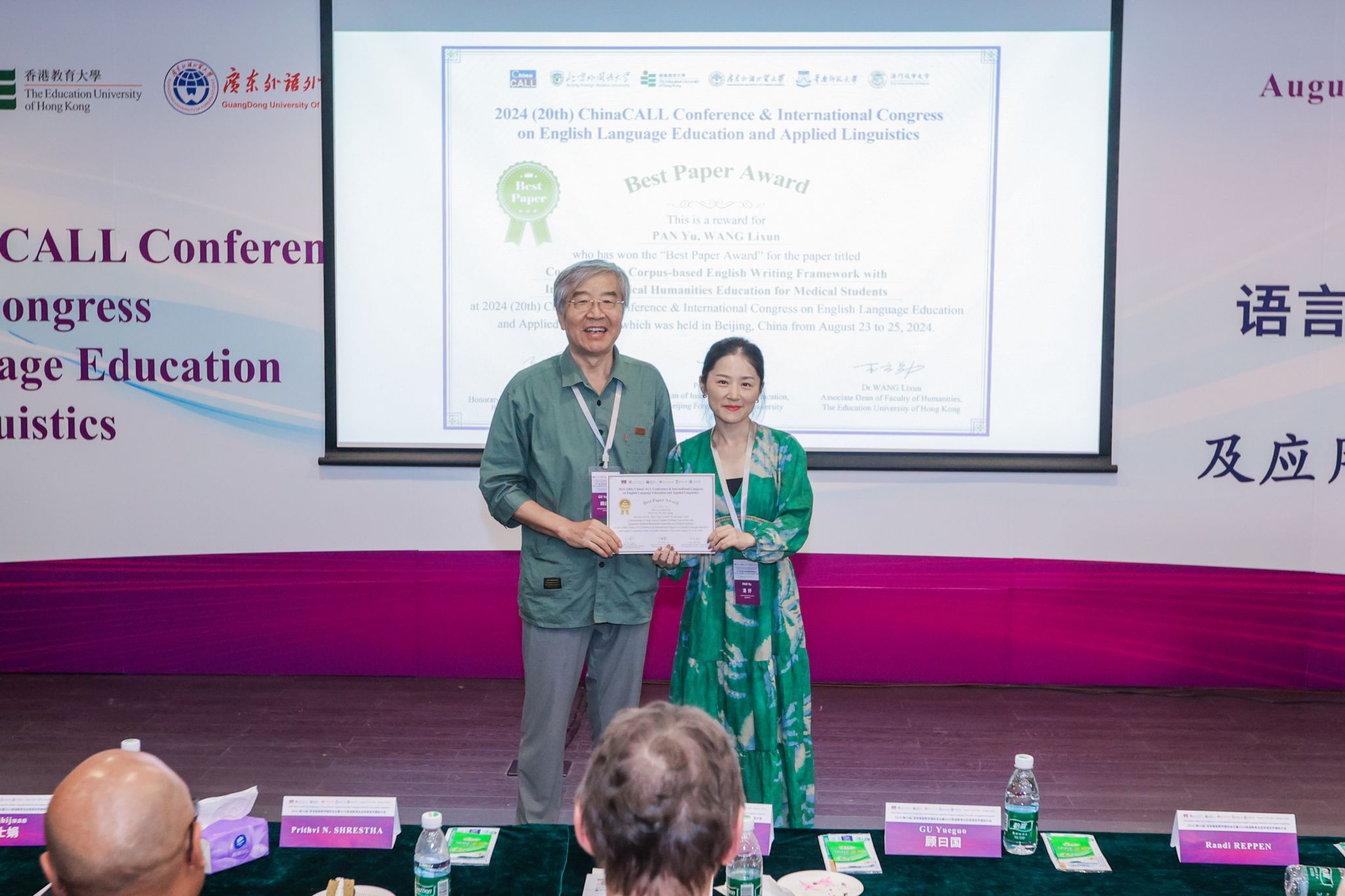 教师潘妤的论文Constructing a Corpus-based English Writing Teaching Framework with Integrated Medical Humanities Education for Medical Students荣获“最佳论文奖”,她在会后采访中分享了对人工智能时代语言教学的看法。潘妤的研究探讨了如何在医学教育中结合基于语料库的语言教学与计算机辅助语言学习(CALL)环境提高医学生的英语写作技能和人文素养。她通过结合医学文本和伦理案例的语料库CALL方法,探索培养医学生国际交流能力和医学人文精神的有效教学,为医学院校语言教育的整合设定了新的教学标准。