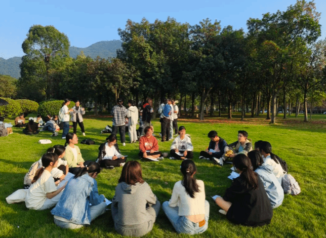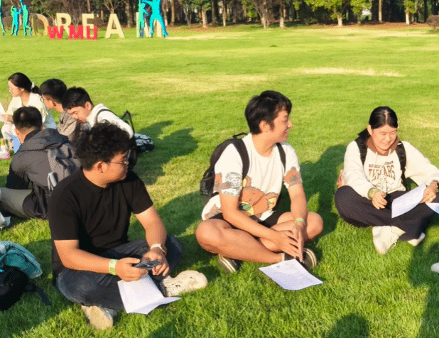 10月10日下午四点,温医户外英语角Unicorn首次亮相!温医图书馆外的WMU Dream草坪在Unicorn五彩斑斓的装饰下吸引了上百号英语爱好者:有提前线上报名的,也有路过临时加入的。