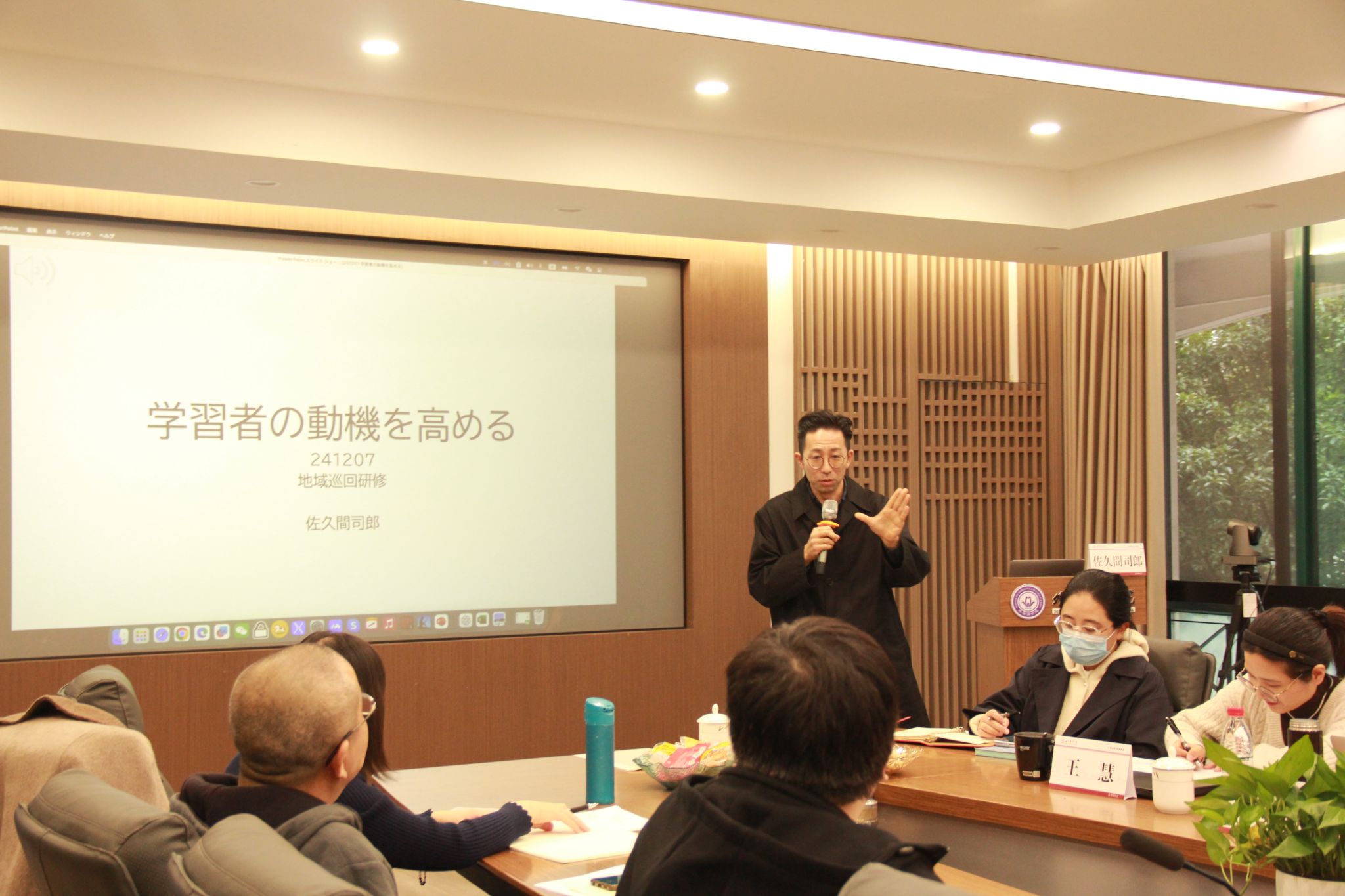 下午,日本国际交流基金的日语教育专家佐久间司郎先生则以“如何提高学生学习动机”为题,奉献了一场精彩绝伦的汇报。他独辟蹊径地以逆向思维为切入点,紧密结合专业实证研究成果,鲜明地提出教师与授课是影响学生学习动机的两大核心要素,并基于此深刻洞察,佐久间先生还无私分享了源于自身丰富实践经验的具体问题解决方案。在他的带动下,日语系教师们围绕教学实践中所面临的种种问题展开了热烈而富有成效的讨论,各抒己见,氛围热烈非凡。