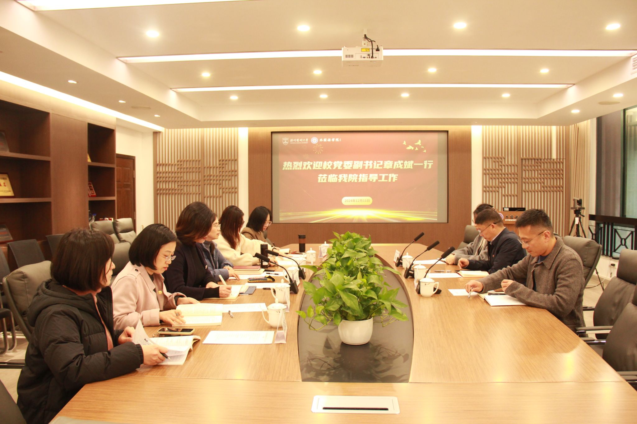 党委理论学习中心组(扩大)会议并作指导。校办公室副主任韩安月、秘书科副科长施方也陪同。学院党委书记刘洁主持会议,学院党委理论中心组全体成员、各教工党支部书记参会。
