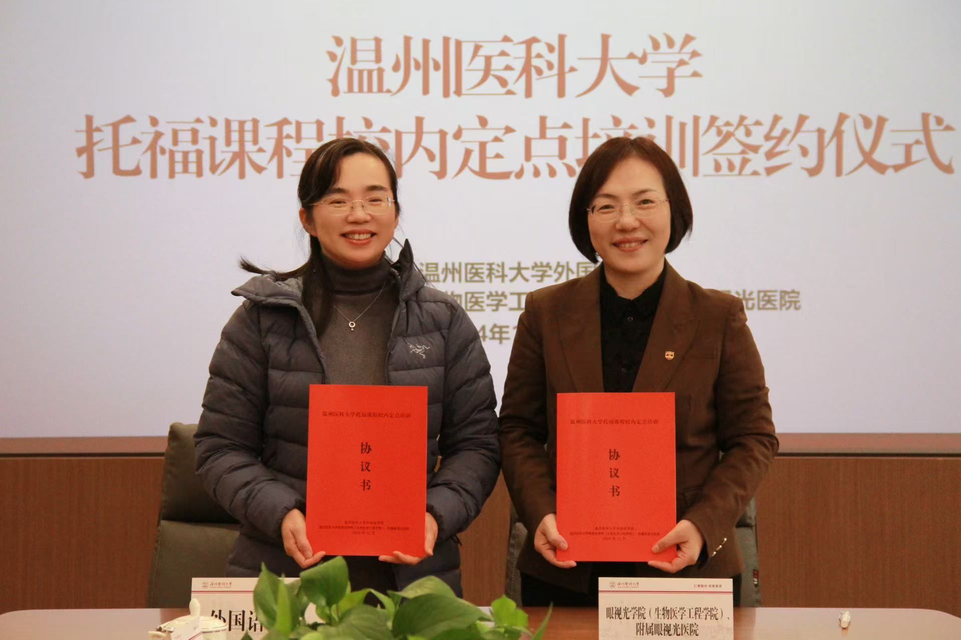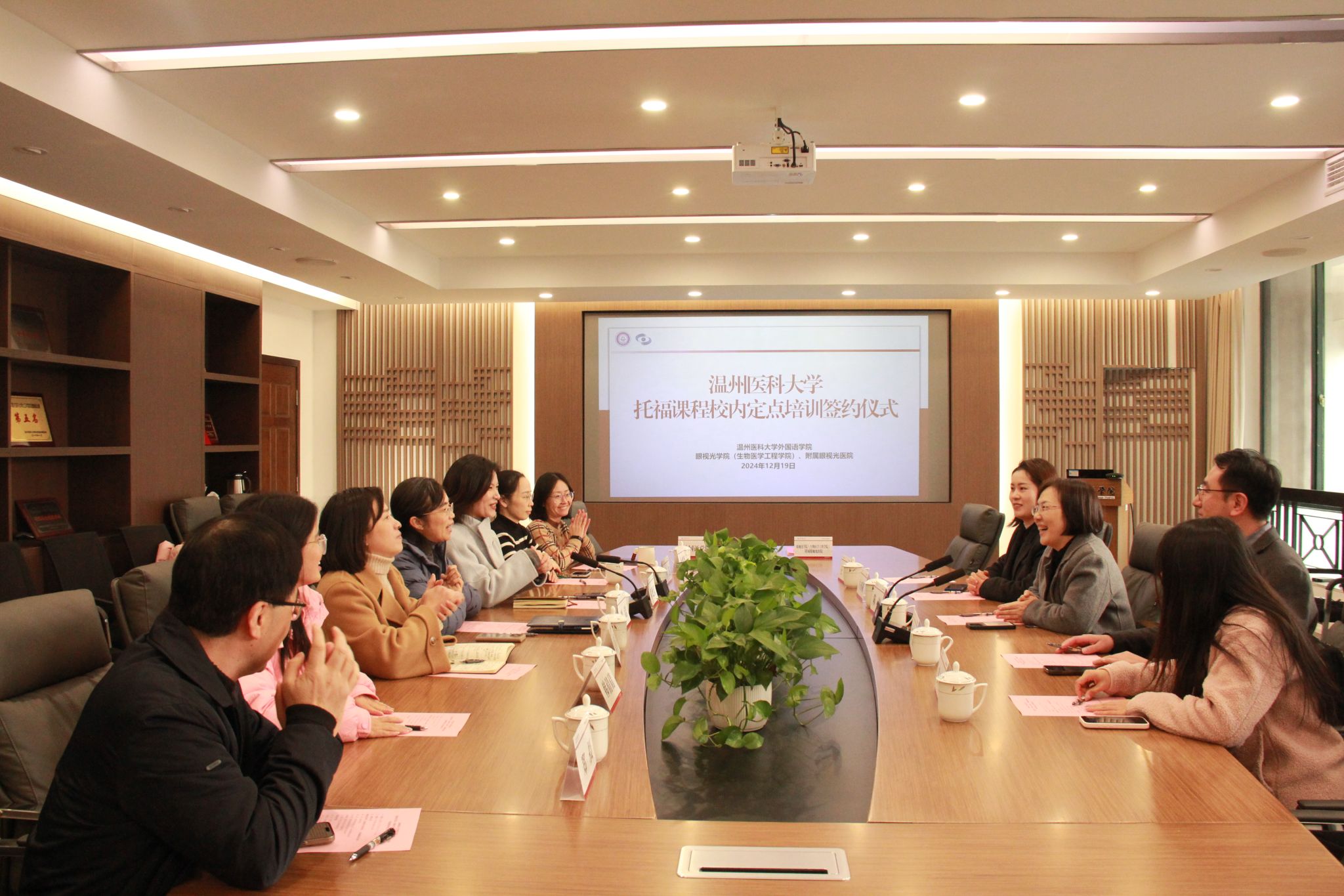 在同仁楼B104举行托福课程校内定点培训签约仪式,与眼视光学院(生物医学工程学院)、附属眼视光医院签订托福课程培训协议书。仪式由91探花