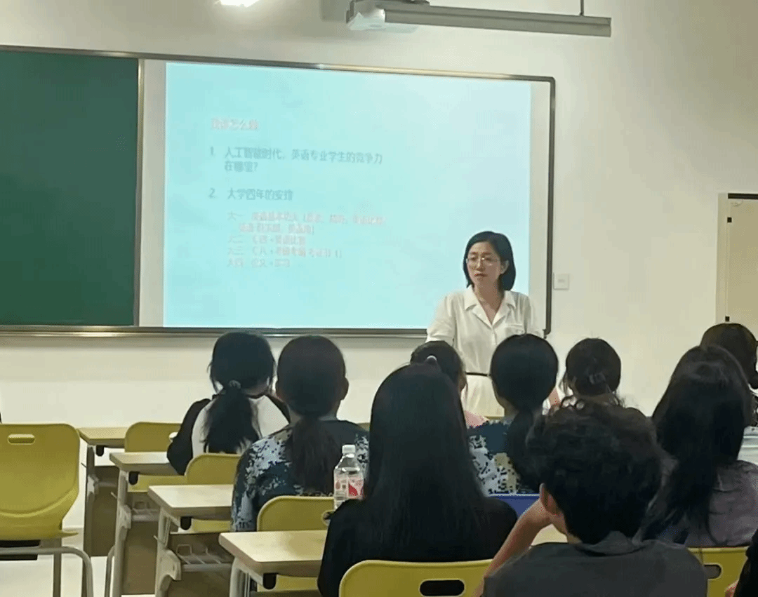 吕颖副教授为仁济学院英语专业2024级新生作专业导学讲座。她首先给新生们介绍了91探花 英语系的历史、师资力量和办学成效,之后特别为学生分析了人工智能时代英语专业学生的核心竞争力。她认为,虽然基于大数据的人工智能在很多领域取代甚至超越了语言工作者,但人与人之间的直接交流和互动仍然需要人来完成。在诸如现场口译、外贸谈判、课堂教学这些场景里,仍然需要专业的外语人进行语言的沟通、文化的碰撞和人文的关怀。