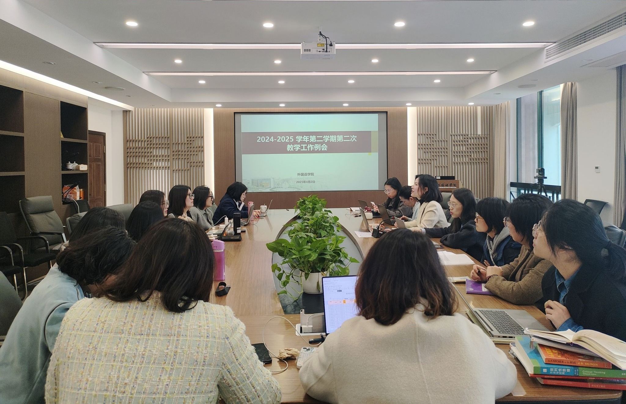 随后,各系部围绕近期教学重点工作展开热烈讨论,就教学质量监控、外语文化建设、学科竞赛组织、教材和题库建设及下学期课程安排等方面进行深入交流。